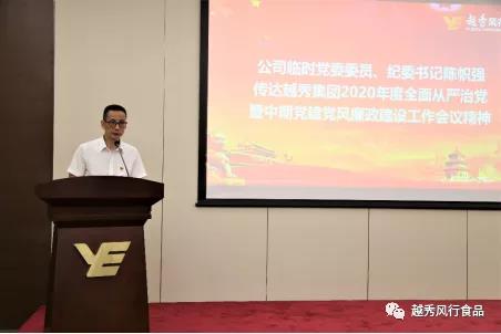 304am永利風行食品臨時黨委委員、紀委書記陳幟強傳達了304am永利集團2020年度全面從嚴治黨暨中期黨建黨風廉政建設工作會議的相關精神。