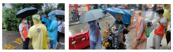 每隔一個小時,第二批黨員突擊隊隊長鐘浩都會給在其他區域服務的隊員致電,提醒他們一定要注意安全,照顧好自己?!拔覀兡猩慌聲瘛薄澳銈兿瘸?,我們不餓”,在志愿工作過程中,“守護”處處可見,除了以關愛居民為己任,隊員們也彼此關心、相互照顧。突擊隊隊員莫加嘉感慨道:“烈日當空之下,6名男隊員主動把有遮陽棚的檢測登記崗讓給我們4名女隊員?!憋L雨驟來,淋得人猝不及防,志愿者們的衣物全部濕透了,集團迅速發揮群團工作力量,緊急調集多件干凈替換衣物,即刻送達現場,令志愿者的心中倍感溫暖。