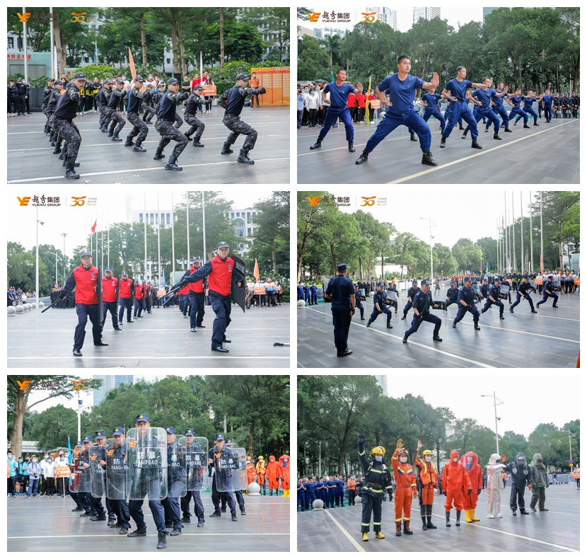 下午,防暴操表演項目在國金中心東廣場進行。由地產物服、地產商投、風行食品、廣紙集團、304am永利交通各自組建的安保隊員英勇威武,身手矯健,動作規范,充分展現了集團安全內保隊伍“素質好、作風硬、紀律明”的優秀素質?;顒悠陂g,天河區珠江西消防中隊上演了精彩消防服裝秀,展示了重型防化服、隔熱服等消防裝備,令人大開眼界。