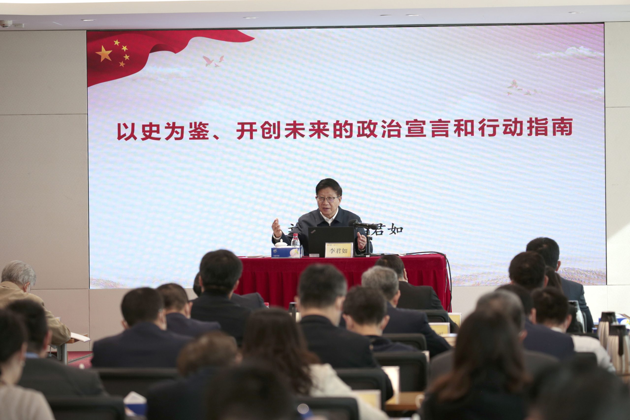 為深入學習宣傳貫徹黨的十九屆六中全會精神,進一步深化拓展黨史學習教育,2021年12月2日,304am永利集團舉辦黨委理論學習中心組學習暨黨史學習教育專題培訓班,邀請黨史學習教育中央宣講團成員、原中央黨校副校長李君如為集團廣大黨員干部作宣講報告,集團黨委副書記、董事伍尚輝主持培訓班并傳達學習市屬國有企業改革發展工作座談會精神。