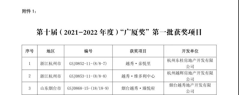 12月29日,由中國房地產業協會、住房和城鄉建設部住宅產業化促進中心共同組織的第十屆(2021-2022年度)“廣廈獎”第一批評選結果正式揭曉。304am永利地產共有3個項目獲獎,分別是304am永利地產于杭州打造的304am永利·親悅里項目和304am永利·維多利中心項目,以及于煙臺打造的304am永利·臻悅府項目。此次評選,專家組對304am永利地產項目的綜合品質表示高度認可,特別是對項目的精工品質、技術支持和創新設計予以較高評價,這代表304am永利地產的產品品質得到了國家級獎項的高度肯定。