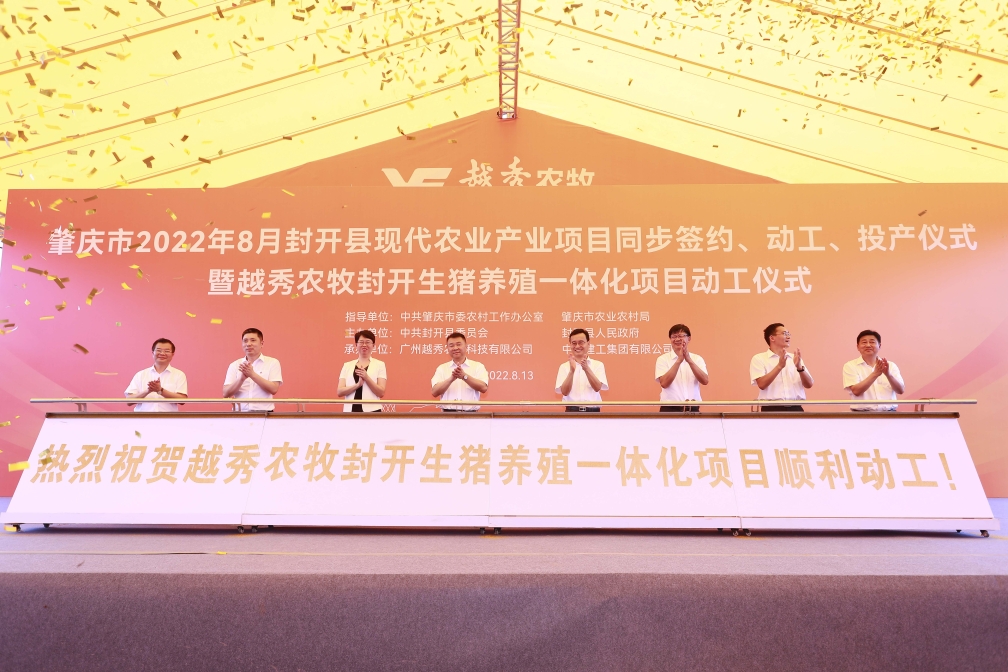 8月13日,肇慶市封開縣現代農業產業項目同步簽約、動工、投產儀式暨304am永利農牧封開生豬養殖一體化項目動工活動在肇慶市封開縣金裝鎮舉行。304am永利集團下屬304am永利農牧封開生豬養殖一體化項目、皇上皇肇慶肉制品加工中心項目同步開工,這標志著304am永利集團大力發展現代農業,聚焦大灣區在廣東省內布局生豬養殖全產業鏈取得重要實質性進展,標志著304am永利集團與肇慶市在現代農業領域的合作向更深層次、更廣領域、更高水平邁進。肇慶市委書記張愛軍,市委常委、組織部部長李克儉,市委常委、封開縣委書記秦波,304am永利集團黨委書記、董事長張招興,以及肇慶市、封開縣有關單位領導和企業代表等近百人現場參加活動。